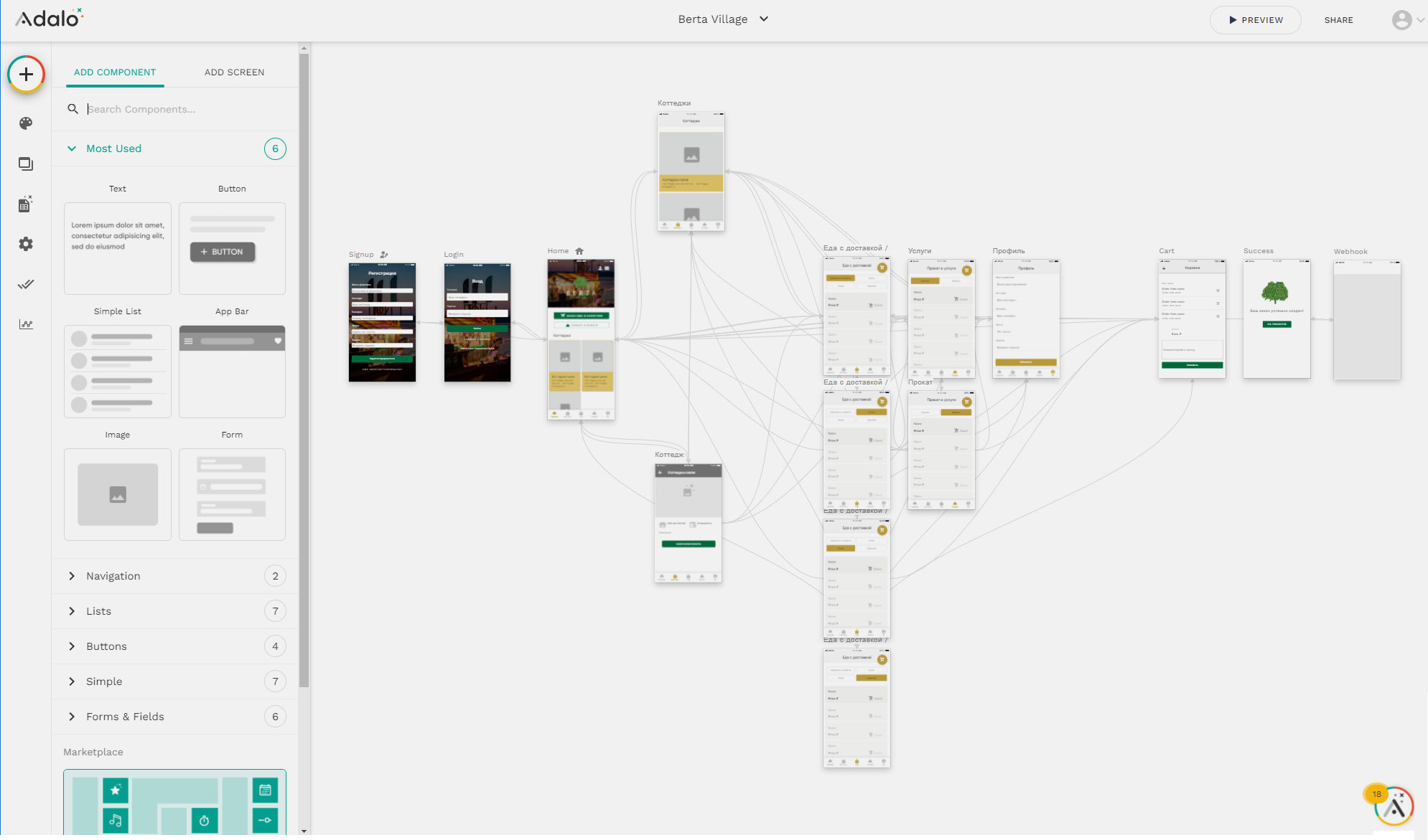 Сложные сайты, веб-приложения. Сложный вход, ограниченная кастомизация. Платформа незаменима при создании MVP сложных веб-сервисов (на Bubble за несколько дней можно запустить аналог Airbnb или Amazon). Bubble заточен под сложные интеграции, визуальная часть хромает.