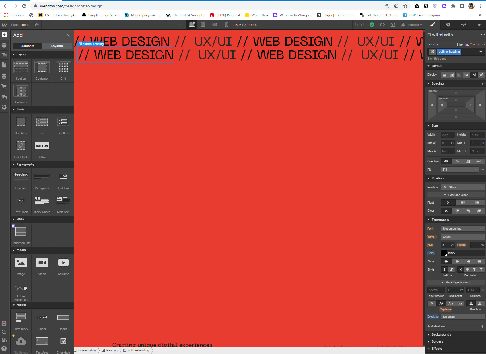 Интерфейс Webflow сложнее Tilda, но и обладает большими возможностями